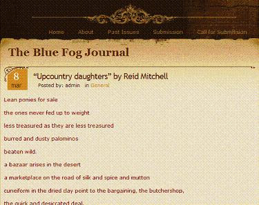 Reid Mitchell’s new poem, “Upcountry Daughters“, is now published in The Blue Fog Journal. Read the poem by following the link and leave your comments on the BFJ website.