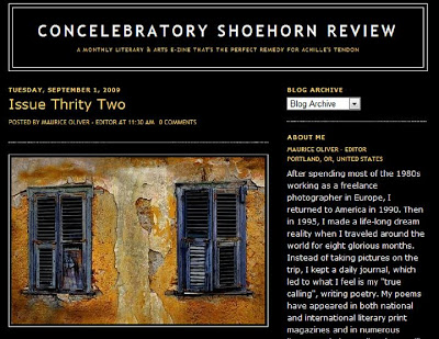 Issue #32 of Concelebratory Shoehorn Review (editor: Maurice Oliver) is now online. Read poetry by Holly Day, Felino Soriano, Doug Ramspeck, Michelle Beth Cronk, Simon Barraclough, David LaBounty, and Donora Hillard. Also included in this issue is photography of Lester A. Garcia and art of Cecil Herring.