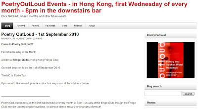 Poetry OutLoud meets on the first Wednesday of every month at 8pm – usually at the fringe Club, though the Fringe Club may be undergoing renovations, so please check emials for changes of venue!