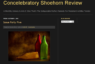 Issue Forty Fifth of Concelebratory Shoehorn Review (ed. Maurice Oliver) is now online. Read poetry by Cath Vidler, Tasha Klein, Bill Dorris, Crag Hill, Sirrus Poe, Gary Wlikens, Richard Lopez, and Suzie Q. Smith. Also included in this issue is photography of Zventan Mumdgiev, and art of Valerie Mankoff. Read the issue here.