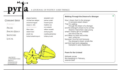 Daniel Bowman Jr.’s three poems “Walking Through the Dream of a Stranger”, “Poem for the Undead” and “Behind the Steelman’s Piece Count” are published in the October 2010 issue of Pyrta Journal. Read them here.