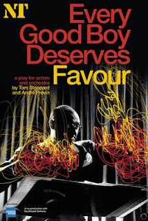 As many of you know, I am currently on a blog break. However, after seeing the National Theatre’s revival (actually, the return of the revival) of Every Good Boy Deserves Favour,1 I felt compelled to break my break just this one time. The work, which is subtitled A Play for Actors and Orchestra, was written by Tom Stoppard (whose Arcadia we saw and enjoyed) with a musical score by André Previn in 1977. Although it comes in only a little over an hour, Every Good Boy Deserves Favour is an ingenious work, which receives an equally ingenious staging in this production. I have never seen anything quite like it before: intellectual, audacious, and surprisingly moving.