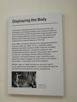 “In the 1950s, art historian Kenneth Clark distinguished between the terms ‘nude’ and ‘naked’. For him, ‘nakedness’ implies discomfort and embarrassment. Nudity meant not ‘a huddled and defenceless body, but … a balanced, prosperous and confident body: the body re-formed’. Twenty years later, another art historian, John Berger, offered a different definition: ‘nakedness’ was honest, whereas ‘nudity’ turned the human being into an object of display. He declared that ‘to be naked is to be oneself…. to be naked is to be without disguise’.”