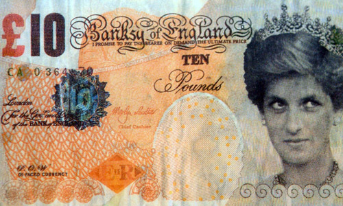 Recently, I watched Exit Through the Gift Shop. It’s a reasonably enjoyable film, and one of the highlights, for me, is this counterfeited tenner: