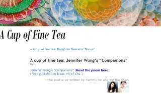 We have a new Fine Tea article up, which is an analysis of Jennifer Wong’s poem “Companions”. Someone called “Roy” left us a comment and I am curious. If you know or are “Roy”, please contact me. I have a few questions.