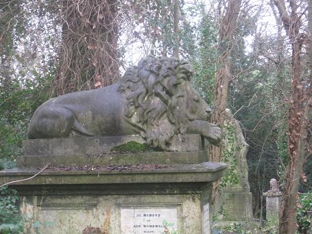 6) Above the Circle, we saw the grave of George Wombwell, who founded Wombwell’s Travelling Menagerie, a kind of travelling zoo. He began his career when he bought two boa constrictors from the London Docks. He then began touring pubs with the snakes, a business which made him a good profit. From there he expanded to other animals. He had two lions, one of which was called Nero. Nero, famous for his docility, is featured on Wombwell’s grave: