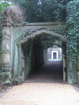 2) Since the 1970s, the cemetery has been run by a charity, the Friends of Highgate Cemetery Trust (FoHCT). Especially on the West side, their policy is called ‘managed neglect’. The effect is that the cemetery is largely overrun but still free of garbage. The organisation takes relative little initiative to restore the graves but it does trim back the trees and plants. This all gives the cemetery a rather Romantic feel, as if you were walking into a lost world.