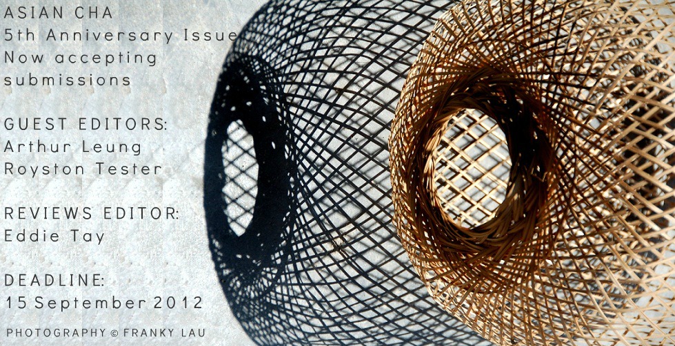 Please send in (preferably Asian-themed) poetry, fiction, creative non-fiction, reviews, photography & art for consideration. Submission guidelines can be found here. Deadline: 15 September, 2012.