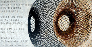 The June 2012 issue of Cha is now available. We would like to thank guest editors Divya Rajan (poetry) and Bob Bradshaw (prose) for reading the submissions with us. We would also like to thank Reviews Editor Eddie Tay for another fine selection of book reviews.