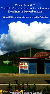 The September 2012 issue of Cha is now available. We would like to thank guest editors Ivy Alvarez (poetry) and Berit Ellingsen (prose) for reading the submissions with us. We would also like to thank Reviews Editor Eddie Tay for another fine selection of book reviews and Marc Vincenz for reading the contest poems.