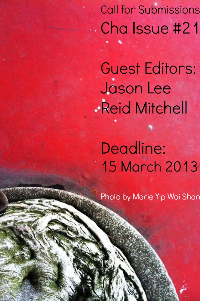 Cha: An Asian Literary Journal is now calling for submissions for Issue # 21, scheduled for publication in May/June 2013.
