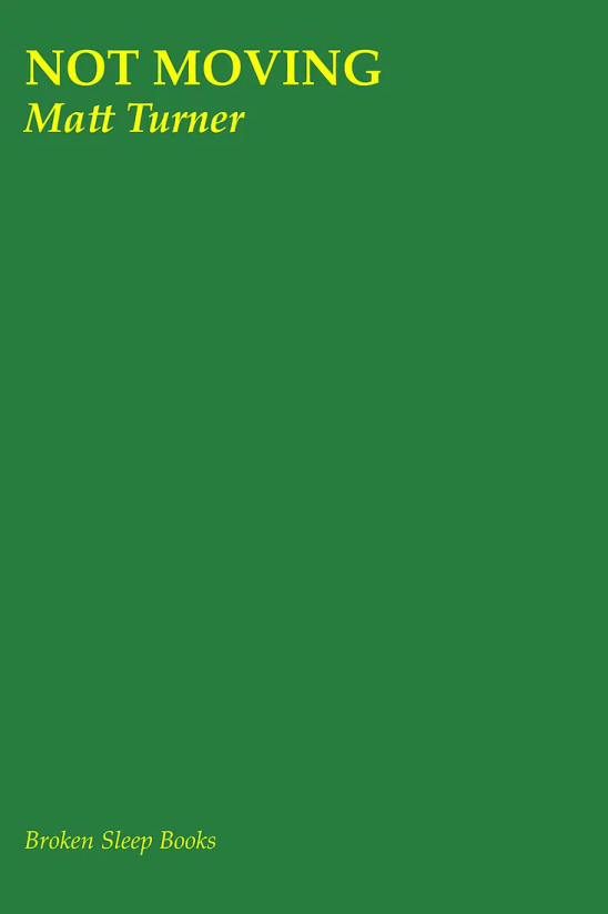 Matt Tuner, Not Moving, Broken Sleep Books, 2019. 48 pgs.