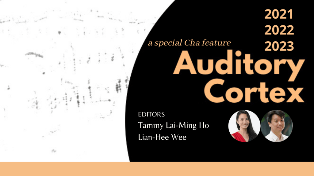 In the April 2018 issue of Cha, we ran the first Auditory Cortex competition, co-judged by Lian-Hee Wee and Cha‘s editor Tammy Lai-Ming Ho. Lian-Hee described the competition: ‘We received more than 230 entries, some from as far as the Americas and Europe, reached by diasporic lives that are a part of so much of Asian, and certainly of all human, history. The varied lives and scopes of the poets presented an amazing landscape that strengthens our convictions for the value of the physical acoustic manifestation of the poet’s inner voice.’ [Click HERE to read the rest of Lian-Hee’s article.] In the June/July 2019 issue of the journal, we published, for the first time, the Auditory Cortex special feature, co-edited by Lian-Hee and Tammy. We hope to publish an Auditory Cortex special feature in Cha yearly or biannually.