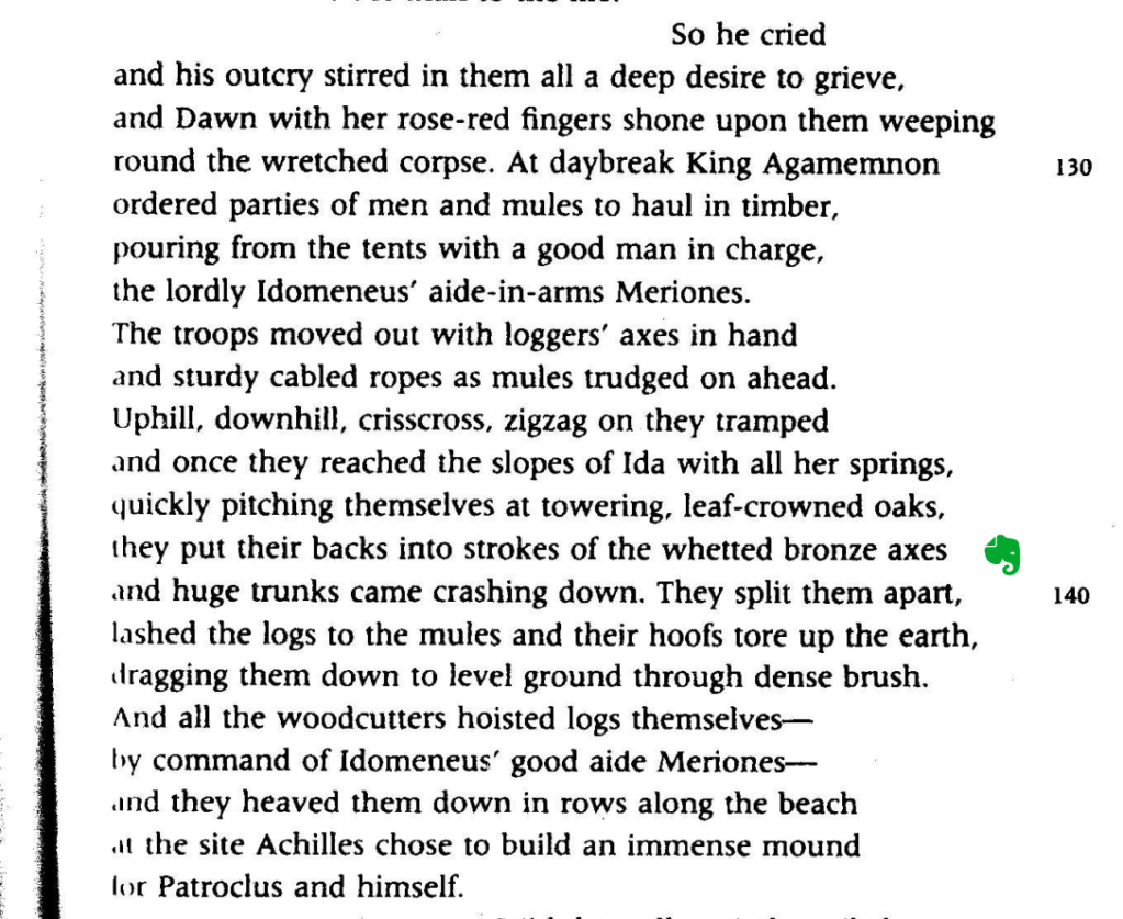 Oliver Farry read from Robert Fagles’s translation of Homer’s Iliad, a passage relating the funeral of Patroclus and Achilles’ grief for his dear friend (L127-L286).