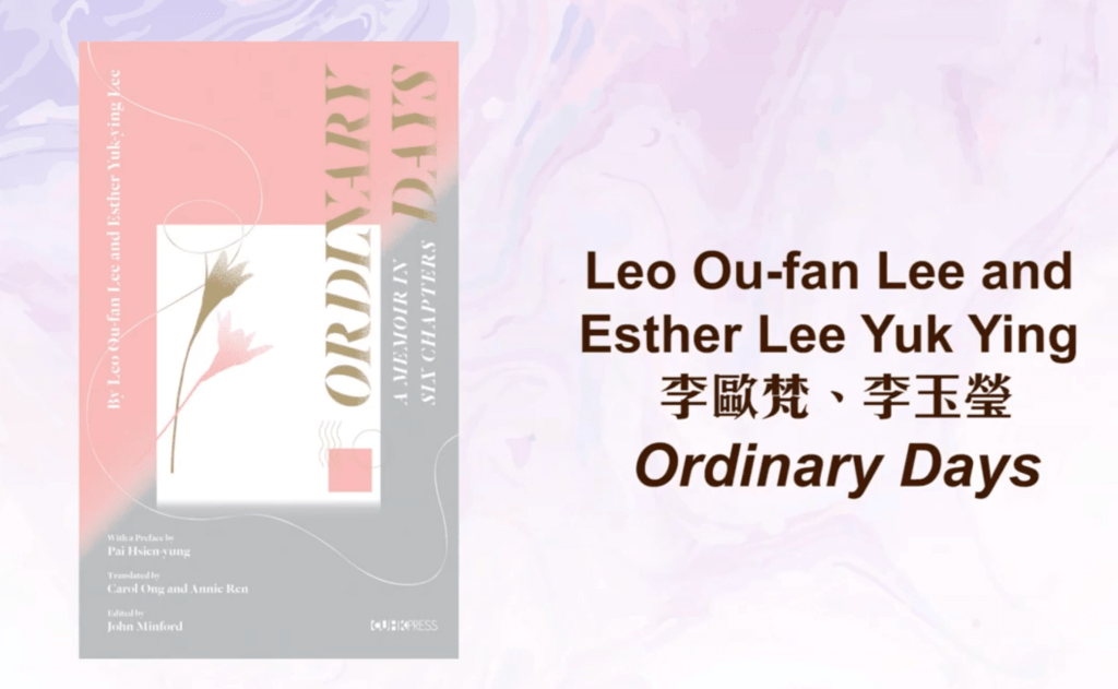 - Leo Ou-fan Lee and Esther Yuk-ying Lee (authors), Carol Ong and Annie Ren (translators), Ordinary Days: A Memoir in Six Chapters, CUHK Press, 2020. 400 pp.