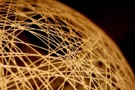 Normally, the process for choosing a cover image for an upcoming issue of Cha is quite straightforward, and my co-editor and I come to a consensus without much trouble. This time, however, the selection proved more challenging. Almost from the beginning of our discussions, two photographs stood out from the rest. Although we briefly considered others, in the end, we found ourselves scrolling between the original two images. Perhaps surprisingly both pictures were not only taken by the same photographer, Enrica Ho (whose work you can see more of in this issue of Cha), but both were of the same subject. What made them so difficult to choose between was not, as you may expect, their similarities, but their differences. As you can see below, the images present two very different interpretations of the same frailly constructed sphere. In Picture 1, the viewer finds herself under a woven dome, gazing upward at an illuminated orb reminiscent of the moon. In Picture 2, the perspective has shifted to the outside; the viewer is now in orbit around a planet of intersecting flight plans. For us, both images were not only beautiful but presented compelling thematic possibilities. The dilemma was which one to choose.