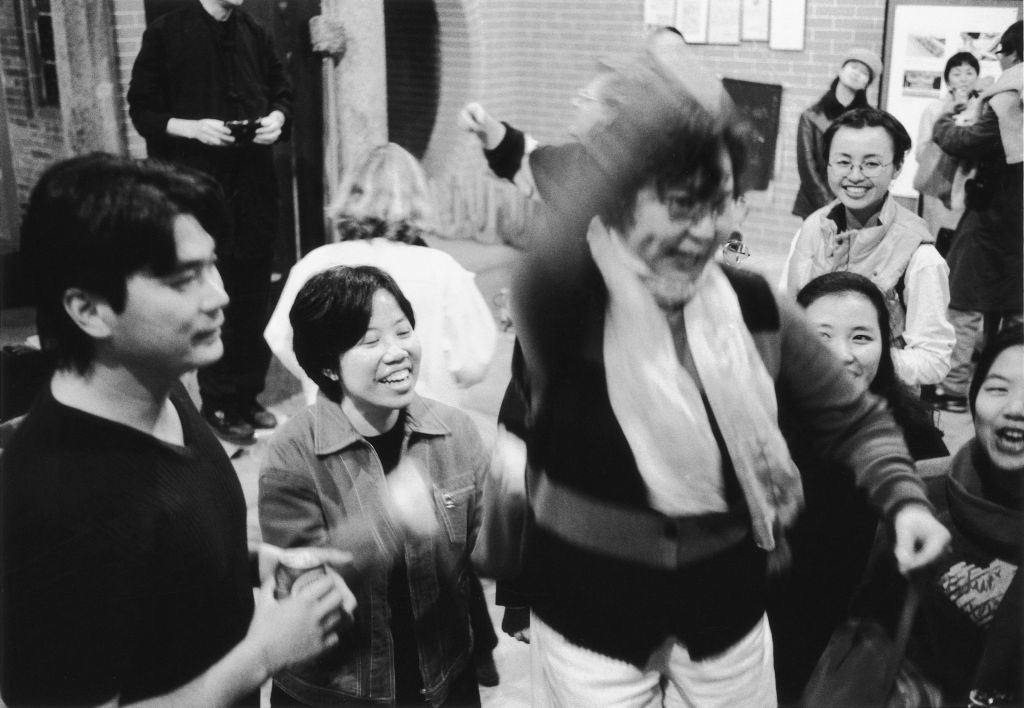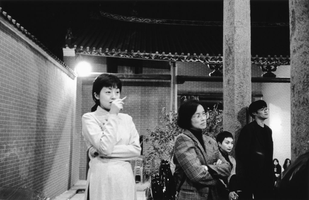 Guests at a New Year’s Eve party in the Tang Ancestral Hall, Ping Shan, New Territories, Hong Kong, 1 January 1997. The party’s host, fashion designer and Tang clan member William Tang, is seen on the left of the image.