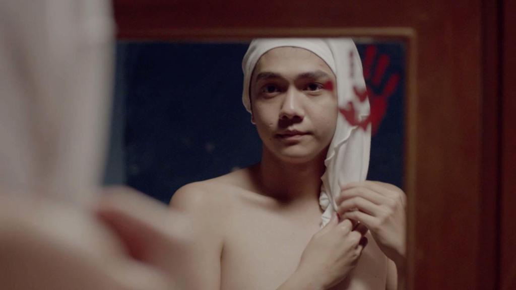 As the short film progresses, Aris loses another significant aspect of his personality: his hair. Even though other male characters, including Aris’s future father-in-law, have hair the same length as his, Aris is made to shave his head in preparation for his wedding. We realise soon enough that he wishes to be longhaired when he wears his T-shirt over his head while stroking it as though it were tresses. He then goes on to dance in a carefree manner when he’s alone in his room. In the very next scene, we see chunks of hair falling on Aris’s shoulder when a barber runs an electric razor over his head. Aris sits there silently, his eyes shut. His facial expression in this scene shows that he is in great affliction; he is helpless in a society where he is not permitted to preserve what he values deeply—he is forced to forgo a part of himself and his identity.