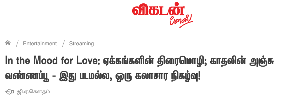How to cite: Gowtham, G.A. “In the Mood for Love at 25: Wong Kar-wai’s Cinematic Language of Longing.” Cha: An Asian Literary Journal, 24 May 2025, chajournal.blog/2025/05/24/in-the.