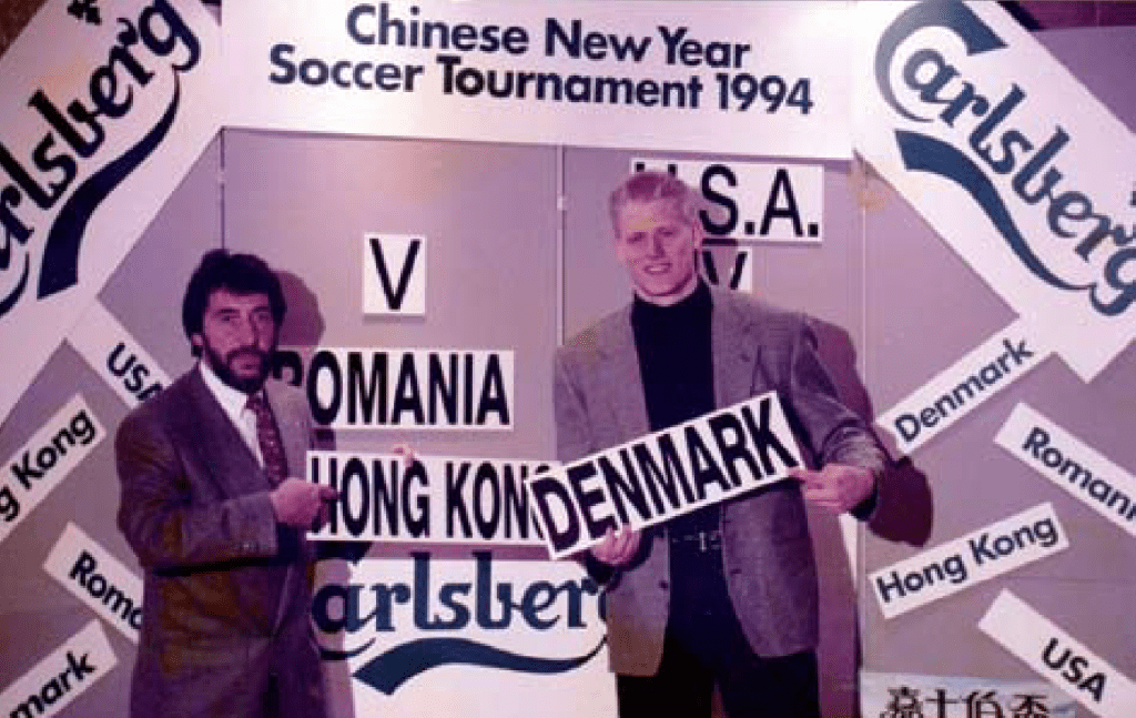 The Lunar New Year Cup was branded the Carlsberg Cup from 1986 to 1989, and again from 1993 to 2006. During this time, Currie encountered numerous international footballers and dignitaries attending the tournament, from Prince Joachim of Denmark to a young Danish goalkeeper named Peter Schmeichel, whom he famously took to Hong Kong’s first McDonald’s, on Paterson Street. Years later, Currie repaid the gesture by having Schmeichel—by then a world-renowned goalkeeper—draw the lots for the Carlsberg Cup in Manchester, England.