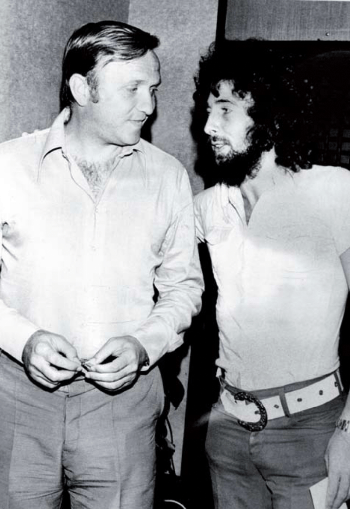 With the great Santamaria of Real Madrid at the Lee Gardens Hotel when he visited as manager of Barcelona side Espanyol.
