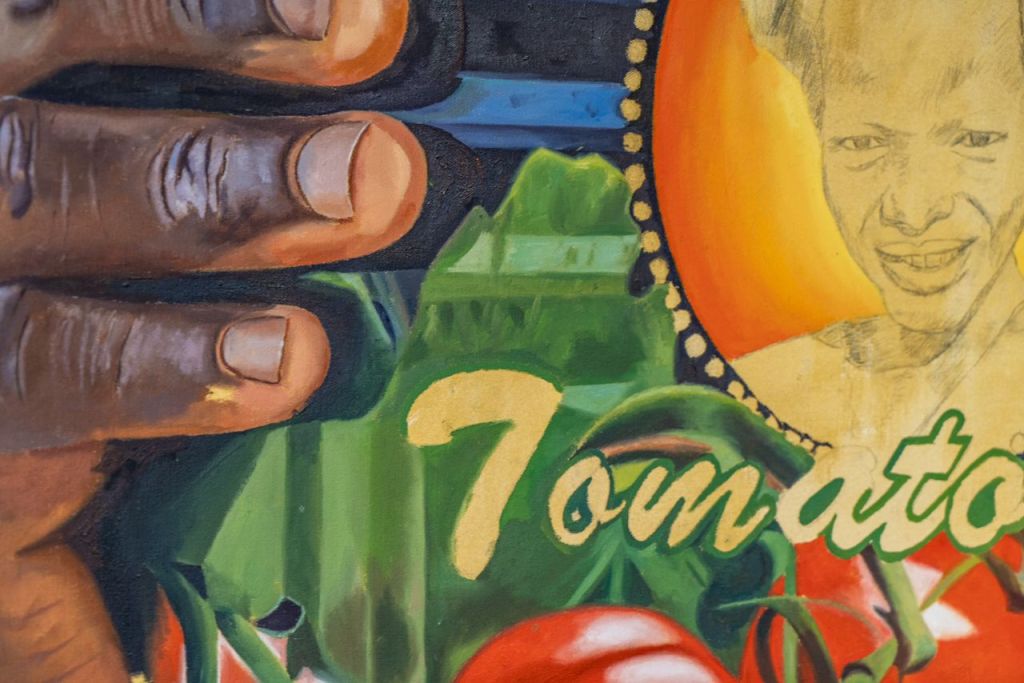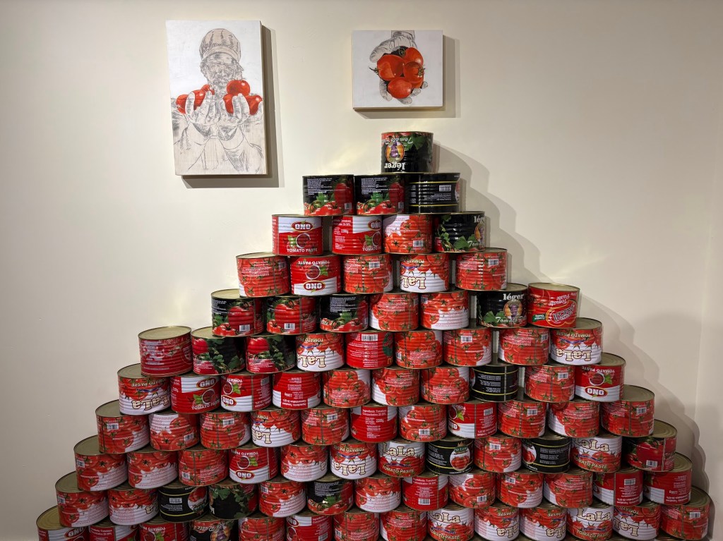 The artist of this exhibition, Saleh Lo, is a tall, lean young man whose father was himself a TalibĂ©. Saleh grew up in a slumââa world without art or artistic educationâ. As a young adult, he taught himself to paint by watching YouTube tutorials. Since then, his vivid portrayals of marginalised communities have earned him solo exhibitions in Nouakchott, Paris, and Mumbaiâand now, Hong Kong. What has drawn him here is the humble can of tomato paste, twenty centimetres in circumference, one of Mauritaniaâs most common foodstuffs. These tins, mass-produced in China, contain a mere 28â30 per cent tomatoes. âWhat is the other 72 per cent?â I asked. Saleh shrugged: âI am here to find out.â He is undertaking a research project in China to investigate the production of this imported staple, now woven into Mauritaniaâs material life.