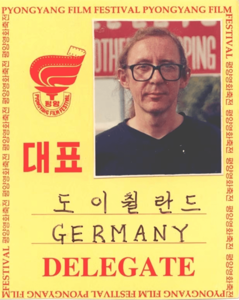 A scan of the identification card from the 2000 Pyongyang Film Festival showing Johannes Schoenherr, source