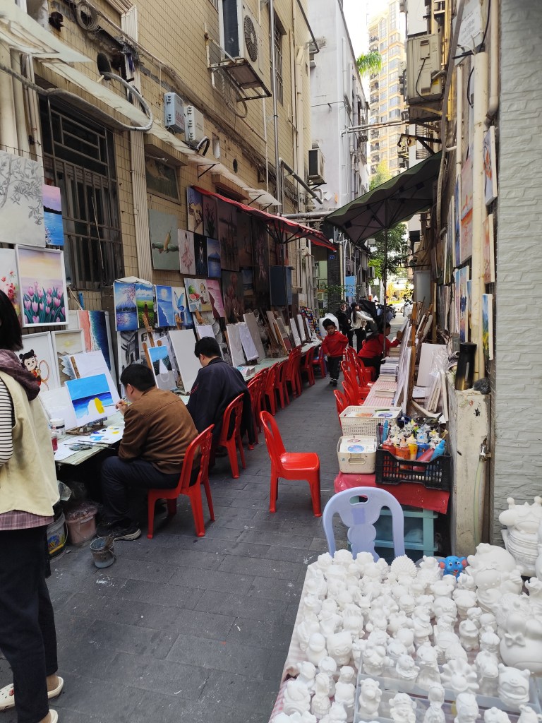 After two years away from Shenzhen, I now see something markedly different. Dafen has been thoroughly transformed into a managed cultural zone. The hutong-like grit has disappeared. In its place are newly built coffee shops aggressively soliciting customers, selling enough ¥20 cups of coffee to attempt to turn a profit. There are noodle restaurants, trinket stalls, decorative objects for apartments and a general atmosphere of lifestyle consumption aimed at “cool” urban youth.