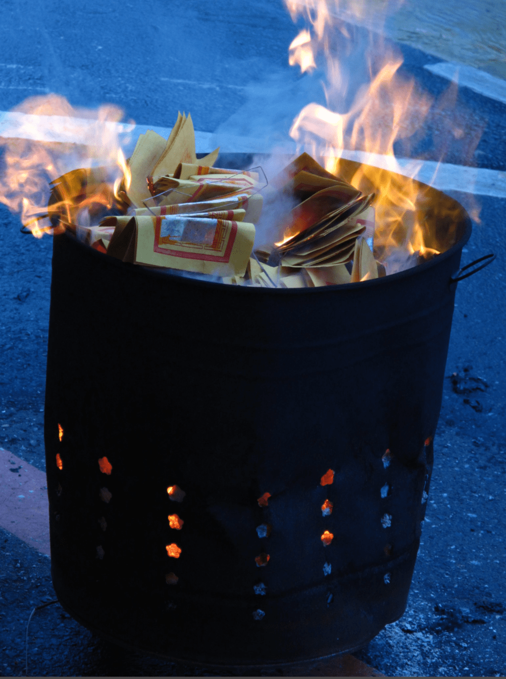 Burning joss paper during Ghost Month in Taiwan. Photo by eazytraveler