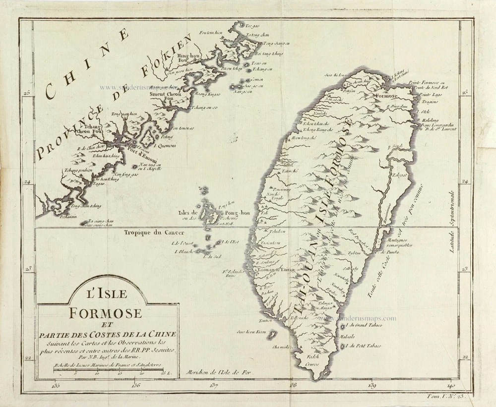 Antique map of Taiwan (Formosa), by Jacques Nicolas Bellin
