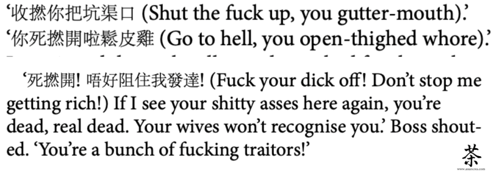 Examples of Cantonese profanities from the first chapter of Kit Fan’s Diamond HIll