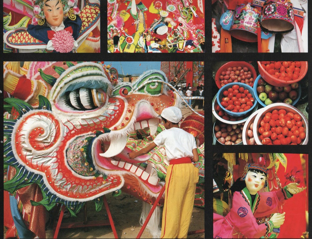 Collage and contrast are two further elements in Macgregor’s photography that broaden his appeal. Subjects for the former include temple decoration, smiling faces, various dry goods, aerial views, seafood, and salt-dried fish, as well as children participating in the annual float procession held on Cheung Chau. Contrasts generally involve two photographs of the same scene taken at different times. The prime example is “The Harbour and the City”, which juxtaposes a panorama taken by Mee Cheung in pre-skyscraper 1948 with one by Macgregor from 1970. Quieter, and for me more melancholy, instances include the image of a “typical old building in Eastern Street, Kennedy Town” from 1977 placed beside that imposing photograph of Central in 1990, as well as two images of Sha Tin, before and after its transformation into a new town, its present form dominated by the racecourse in the foreground alongside extensive sewage-treatment works.